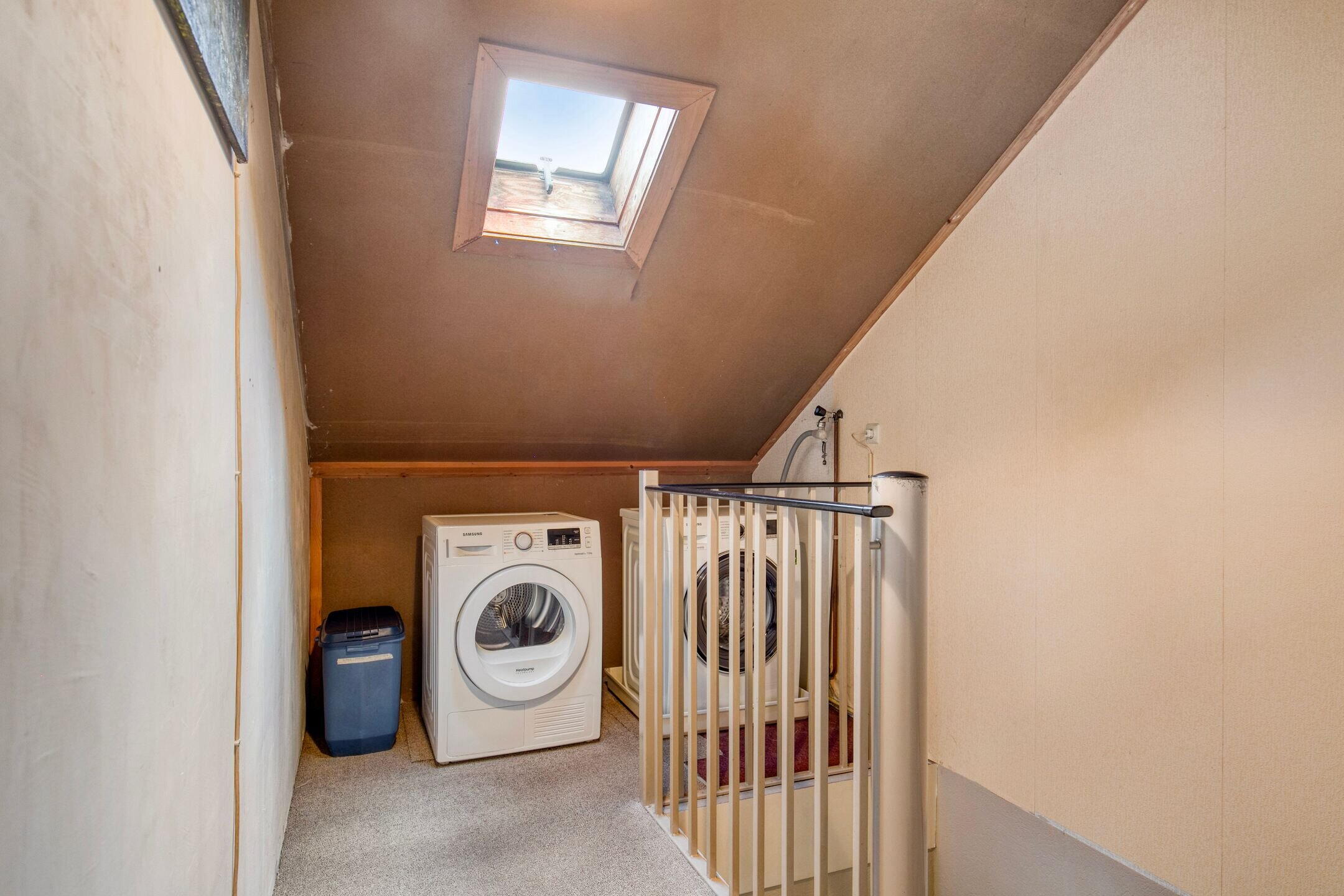 Ruime voorzolder met opstelplaats voor wasmachine en droger, mechanische ventilatie. Veel bergruimte en nog een ruime 4e slaapkamer.